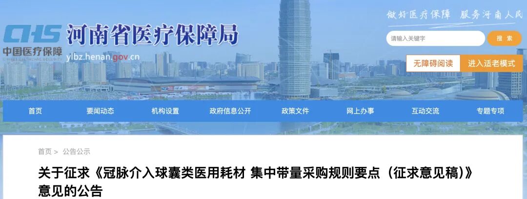 9月11日,河南医保局发布《冠脉介入球囊类医用耗材 集中带量采购规则要点(征求意见稿)》(完整见文末),意见征求截止时间为9月15日18时。